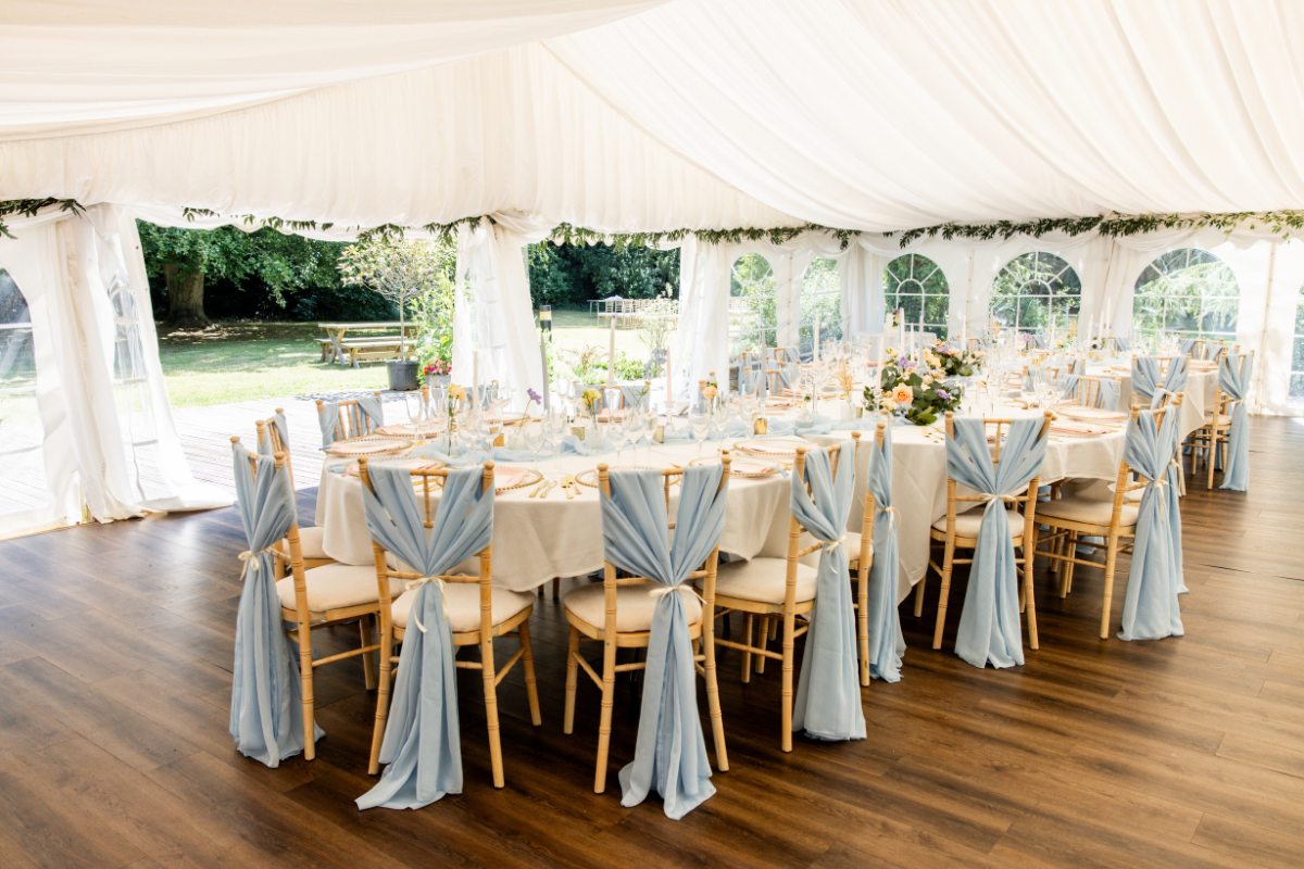 Table choice has a significant impact on the overall feel of a marquee wedding, and in many cases, trestle tables work particularly well as they mirror the relaxed, countryside setting and create a natural sense of flow across the space.